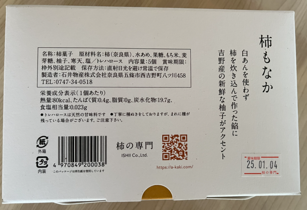 それは、柿の専門店の「柿もなか」で、価格は1000円くらいと手頃でした。